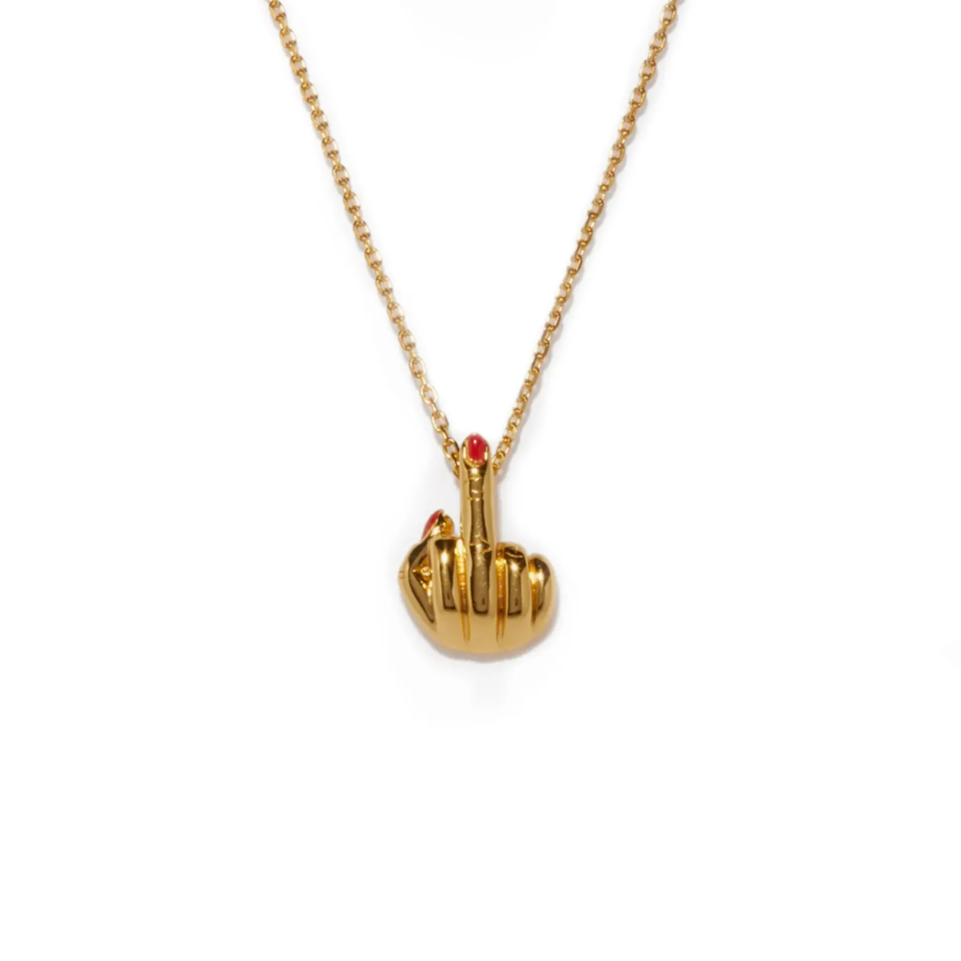 This French For Goodnight Necklace Has Been Expertly Constructed From Gold Plated Silver And Features A Middle Finger-Shaped Pendant Complete With Black Enamel Detailing And A Thin Chain With A Lobster Clasp Fastening.