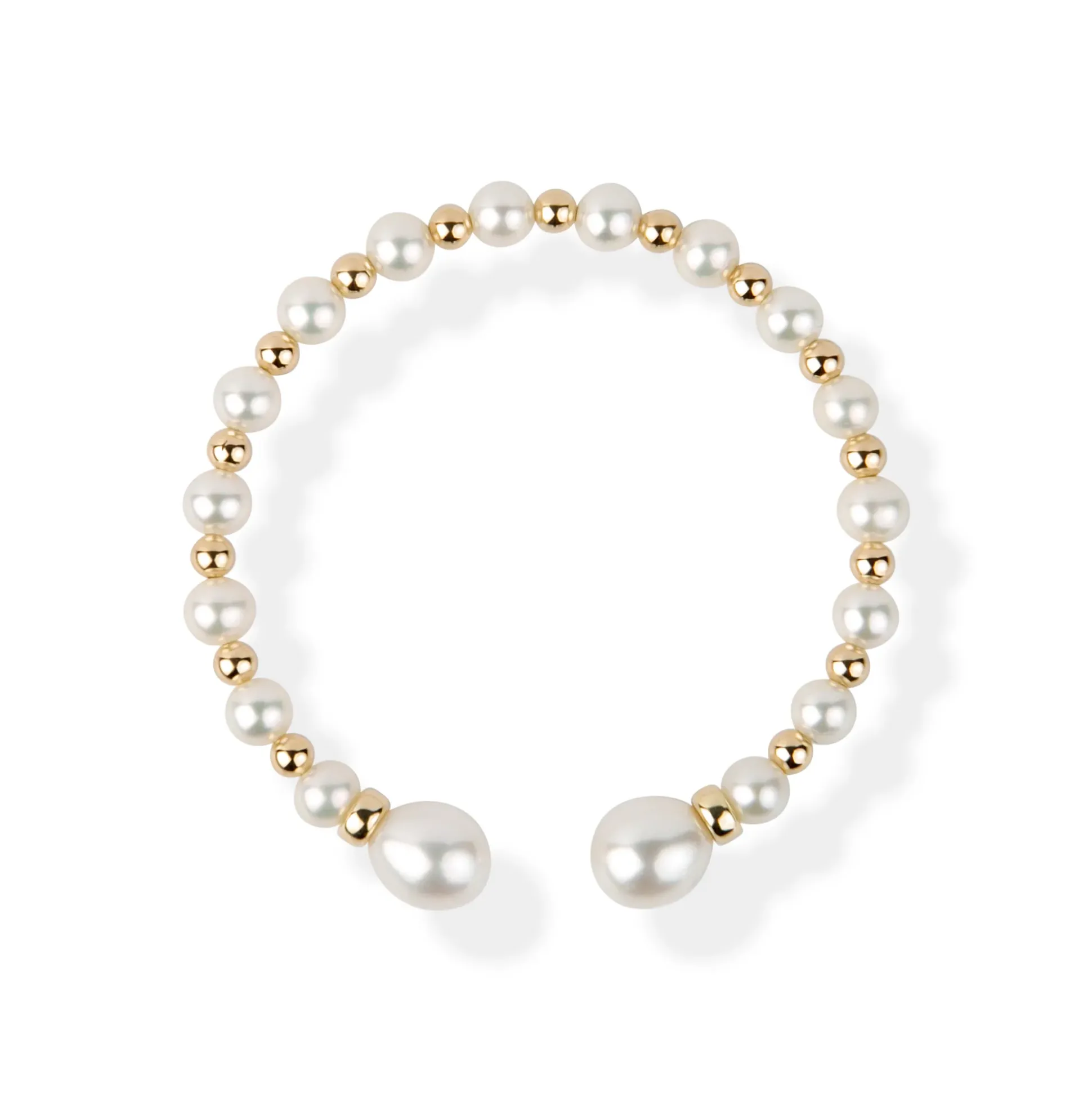 Offering A Lightweight, Contemporary Take On Classic Pearl Jewellery, This Bracelet Highlights A Classic Open Cuff Silhouette, Threaded With An Alternating String Of Freshwater Pearls And Faceted Gold Beads.