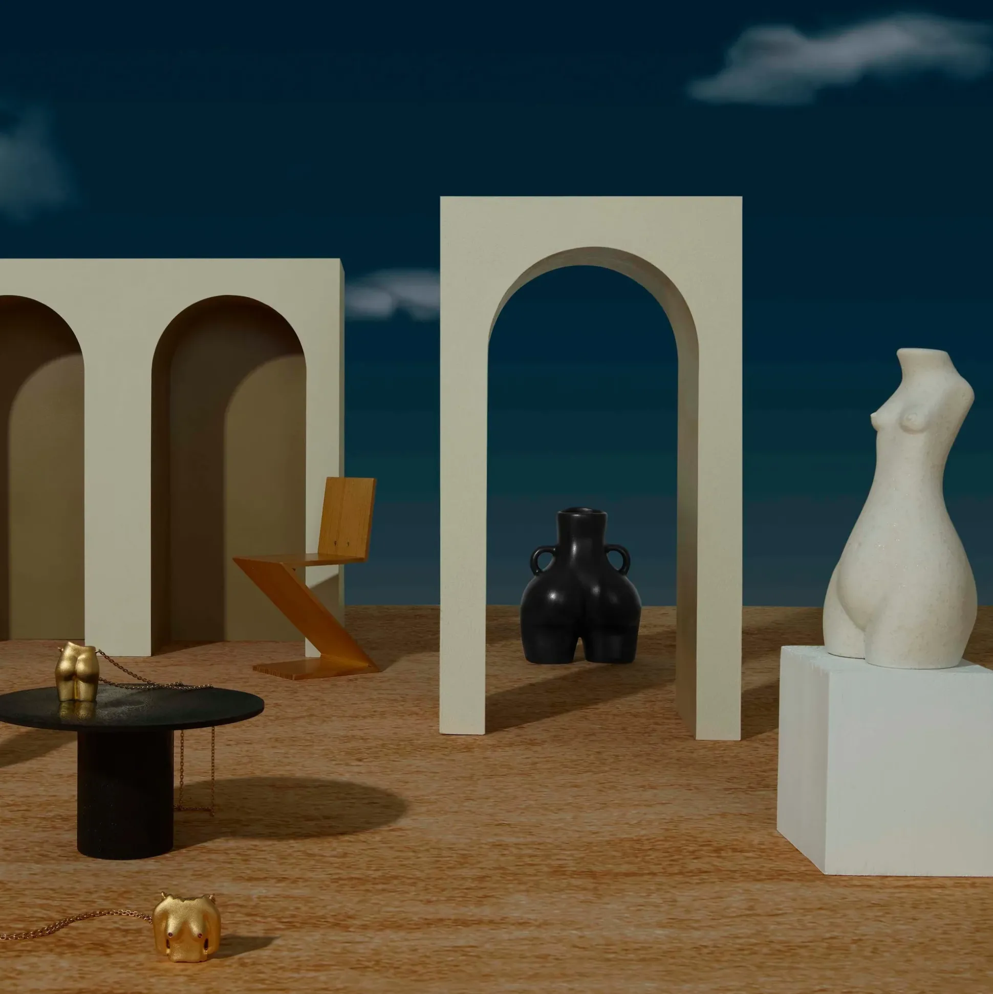 Crafted From Earthenware, This Set Features Miniature Versions Of The Best-Selling Love Handles Vase And Breast Friend Vase. Complete Black And Marble Finish, These Two Voluptuous Shapes Are A Lovely Little Addition To Any Corner Of Your House. Use Them Simply As Decoration, Or To Hold Flowers, Pens And Any Other Household Bits That Need A Home.
