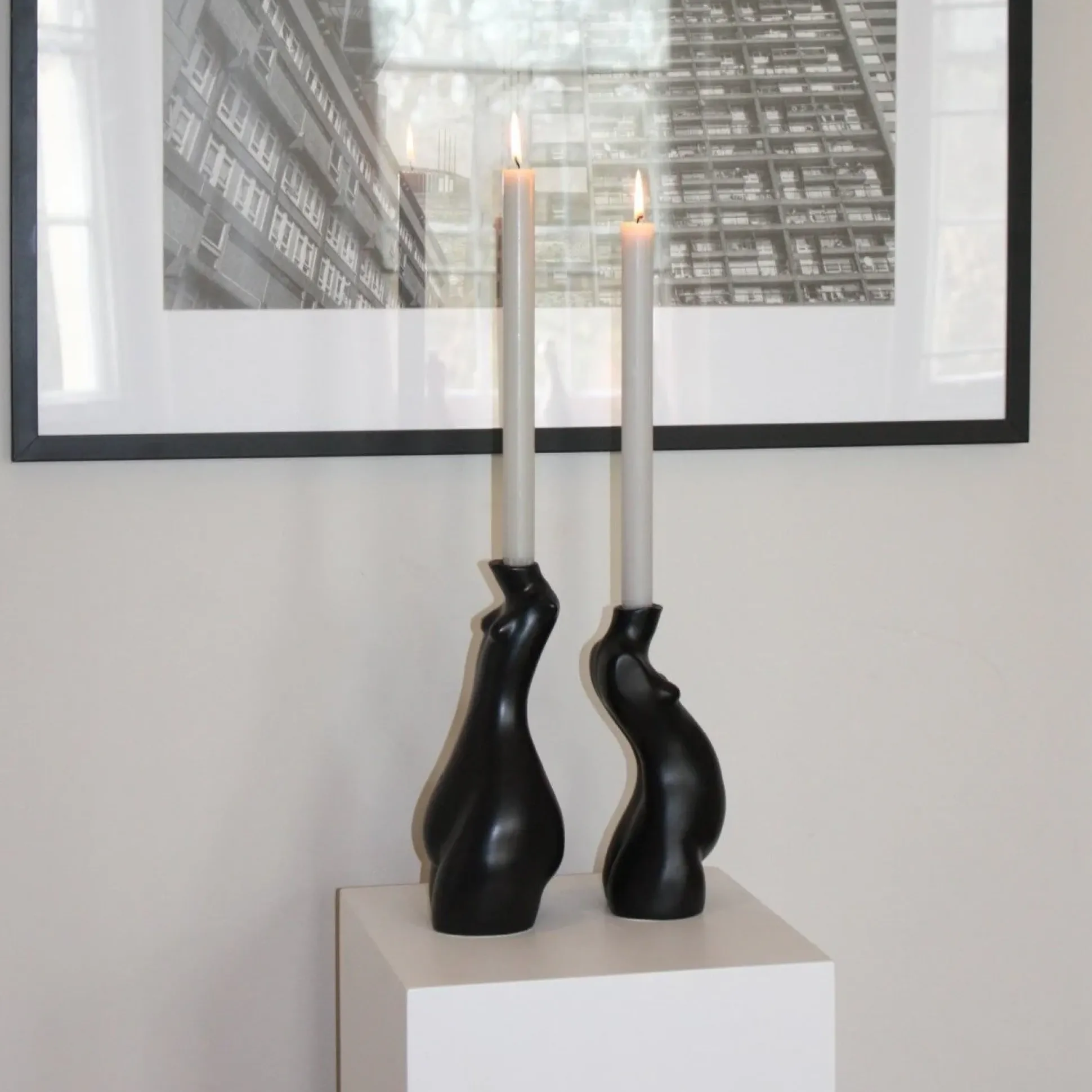 Display Tapered Dinner Candles In This Exaggerated Figure-Formed Candlestick Holder, A Bold Conversation Piece. Finished With A Beautiful Matte Glaze, This Short Ceramic Candlestick Holder Has A Deliciously Mischievous Appeal That Makes The Perfect Complement To Colourful Dinner Candles Within A Dining Setting.